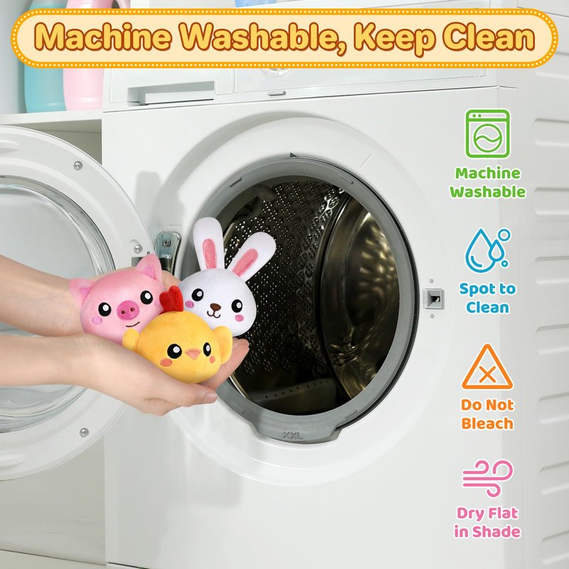 - Safe & Durable: The plush playset is made from premium plush and natural cotton without small parts, with a baby safe design, using ultra-strong stitching technology, ensuring safety and durability. The 100% non-toxic materials can provide baby aged 0 months and up a safe play experience and save parent’s worry. Also, the plush toy is easy to wash, supporting hand and machine washing.
