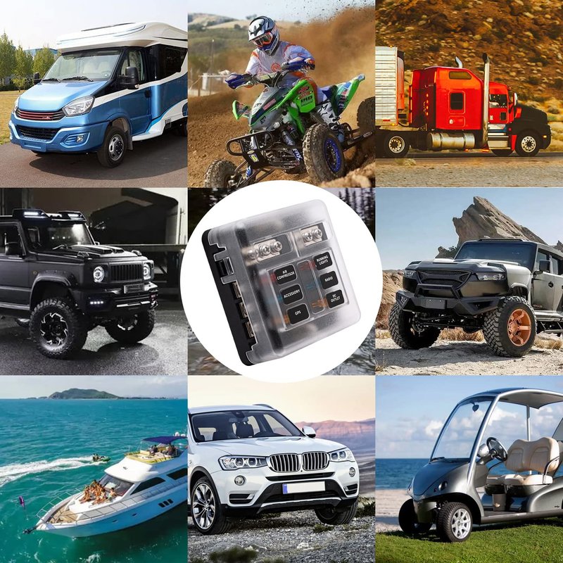 - ⚡Superior Material:Made of environment friendly PBT material, this 12 volt 6 Way fuse block meets all the standards of an ideal fuse box. It has high strength, insulation, heat resistance and flame resistance. Damp proof cover included,After installation, it can prevent water from eroding the circuit.