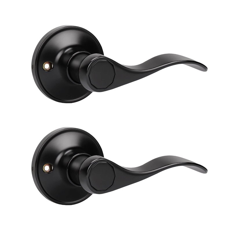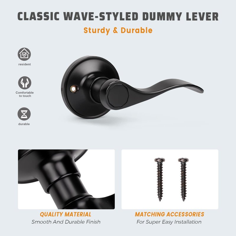 KNOBWELL 2 Pack Single Sided Dummy Door Levers Door Knobs Drop Style Dummy Knobs Door Handle Set, Matte Black Finish, Wave Style Dummy Levers for Right Handing Doors
