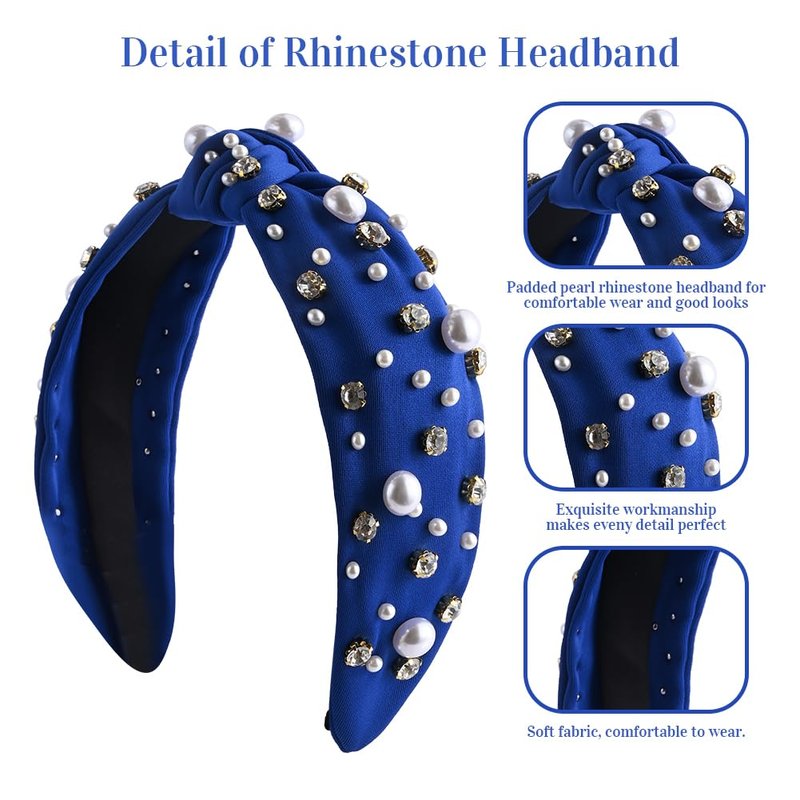 - Pearl Crystal Headband :Add a touch of elegance to your look with this beautiful pearl knotted jeweled headband for women. Featuring a unique combination of pearls, rhinestones, and crystals, this headband is a fashionable and elegant option for any event.