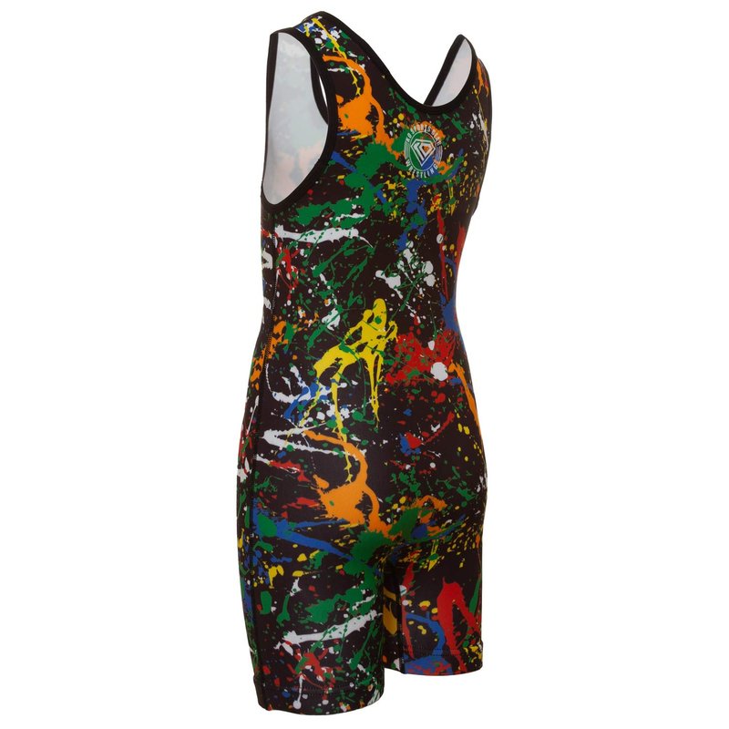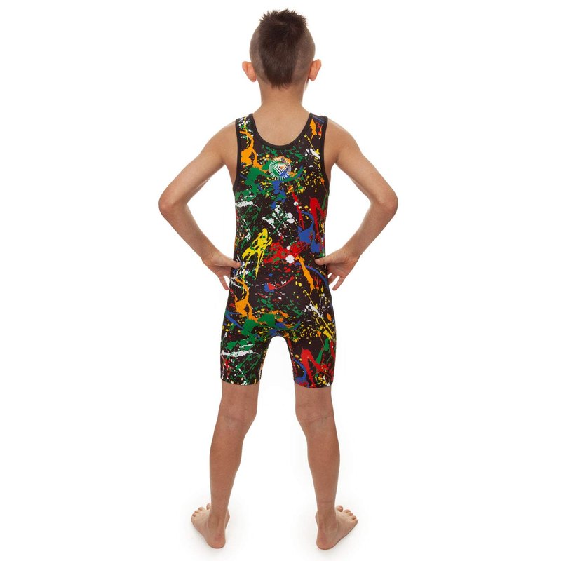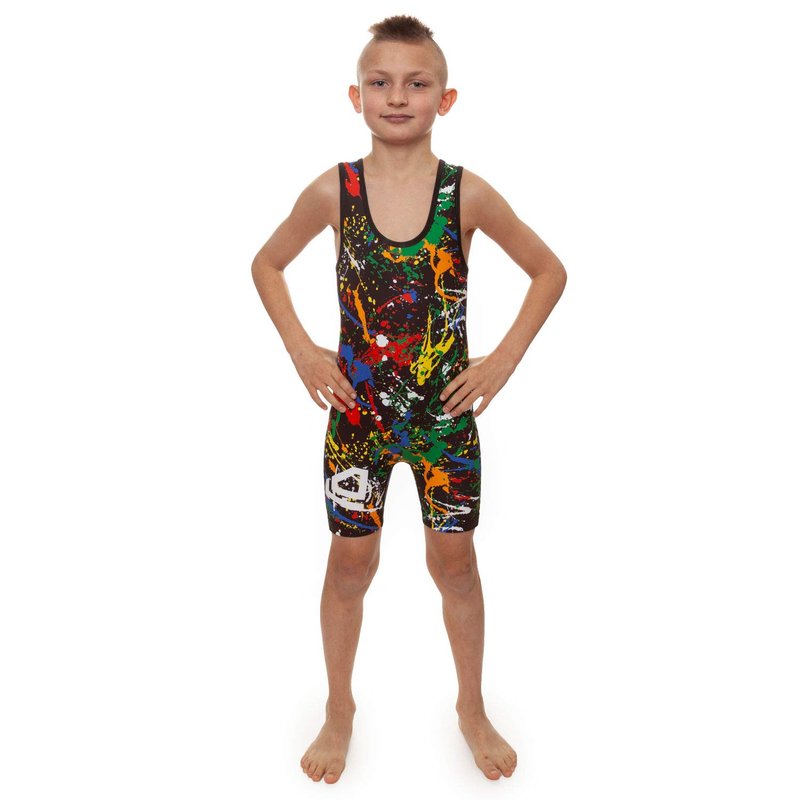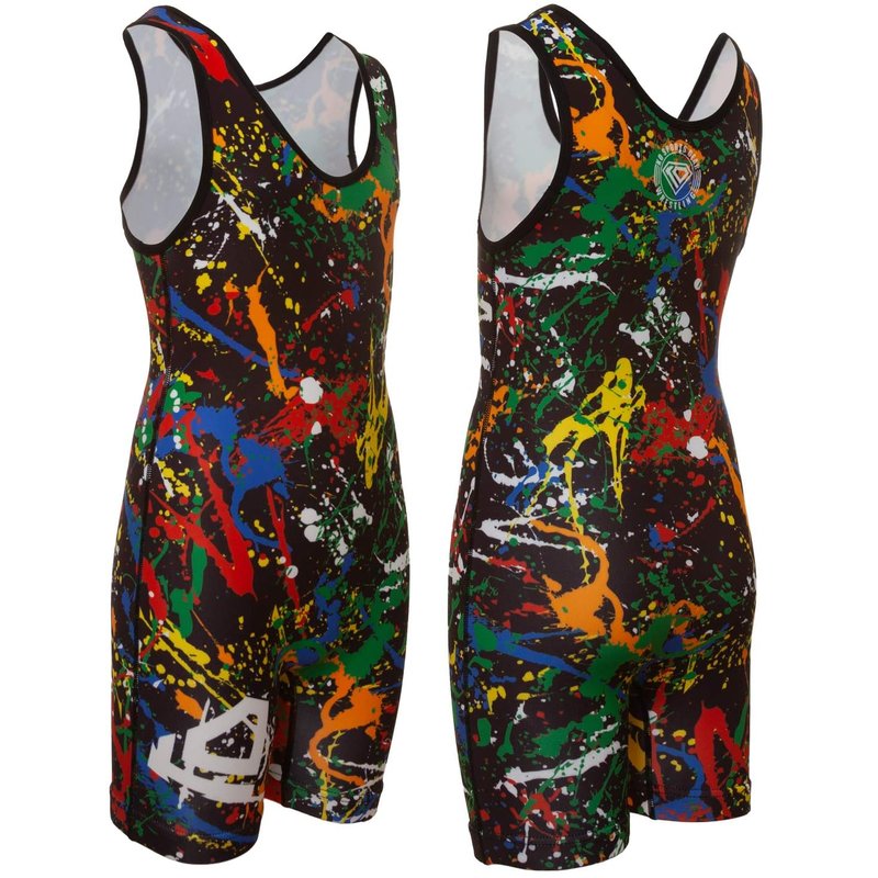 KO Sports Gear - Unisex Wrestling Singlet (Paint Splatter, Youth Medium)