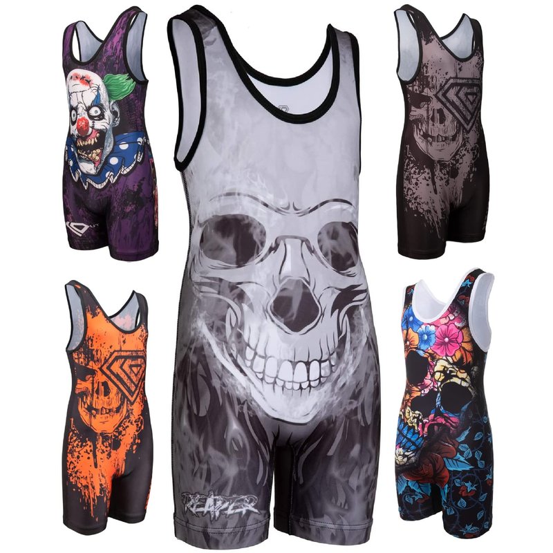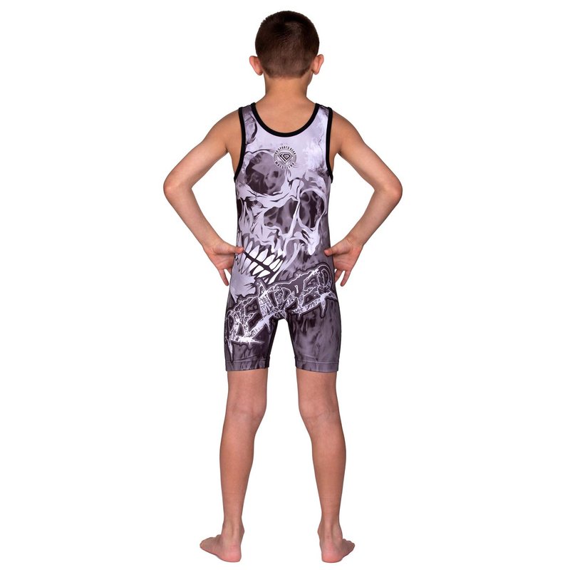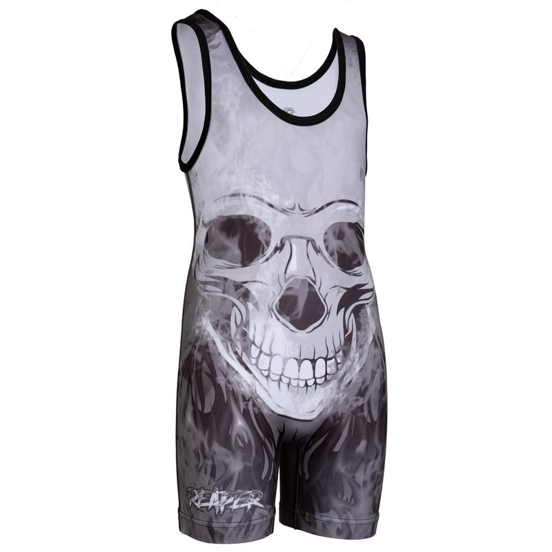 KO Sports Gear - Unisex Wrestling Singlet (Reaper Skull, Youth Medium)