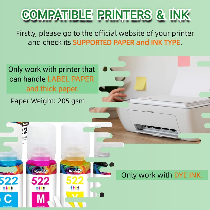 4. Some ink may not compatible well with this sticker paper. If so, please try to print with the 'Photo Paper' setting or reach out to us for help.