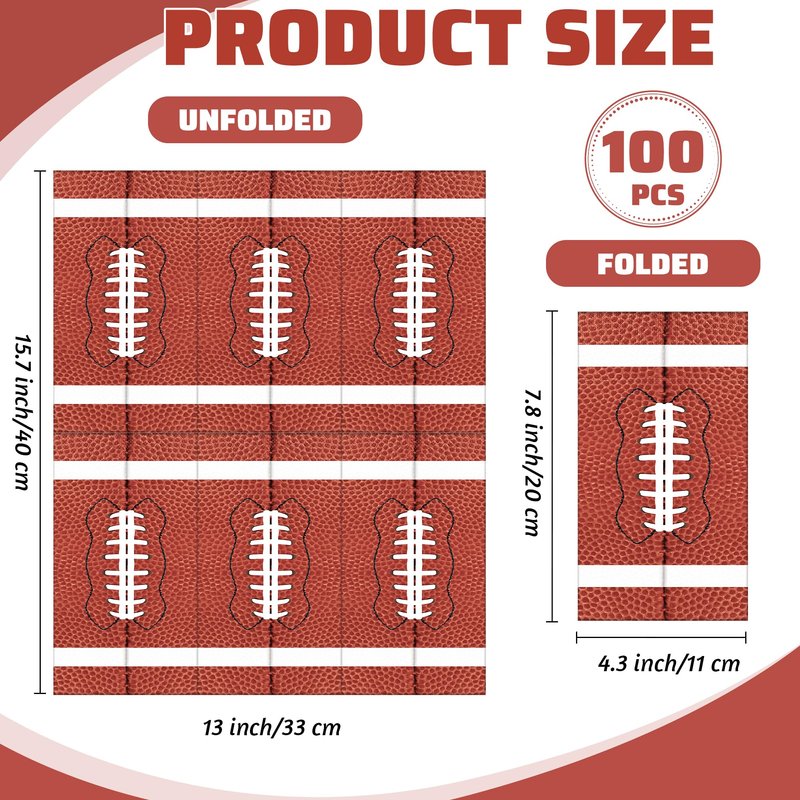 - Ample size: the unfolded size of our football party napkins measure about 15.7 x 13 inches/40 x 33 cm, and the folded size is about 7.8 x 4.3 inches/20 x 11 cm, making them suitable for various uses and highly convenient; you can place these disposable paper napkins under wine glasses and beverages to keep your table clean