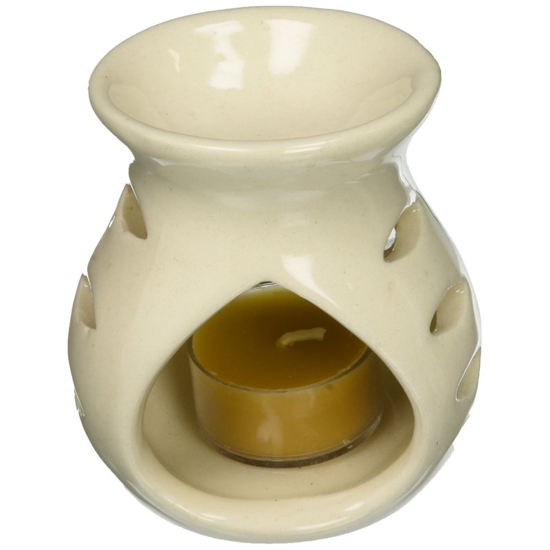 - Sandalwood scented oil, and a tea light candle. Set includes ceramic oil burner