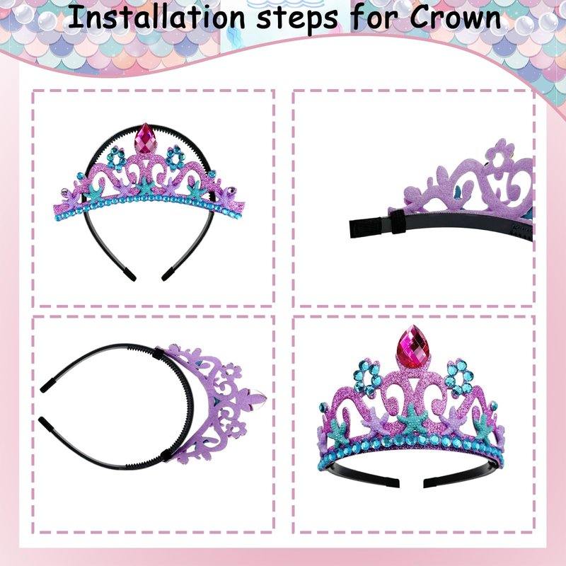 • Perfect gift: The beautiful mermaid accessories are perfect for birthday parties, mermaid themed parties, princess costume games, Christmas, Halloween, photography, and more. This is an excellent gift for your dear daughter, granddaughter, and niece. No little girl can refuse the sparkling mermaid jewelry set