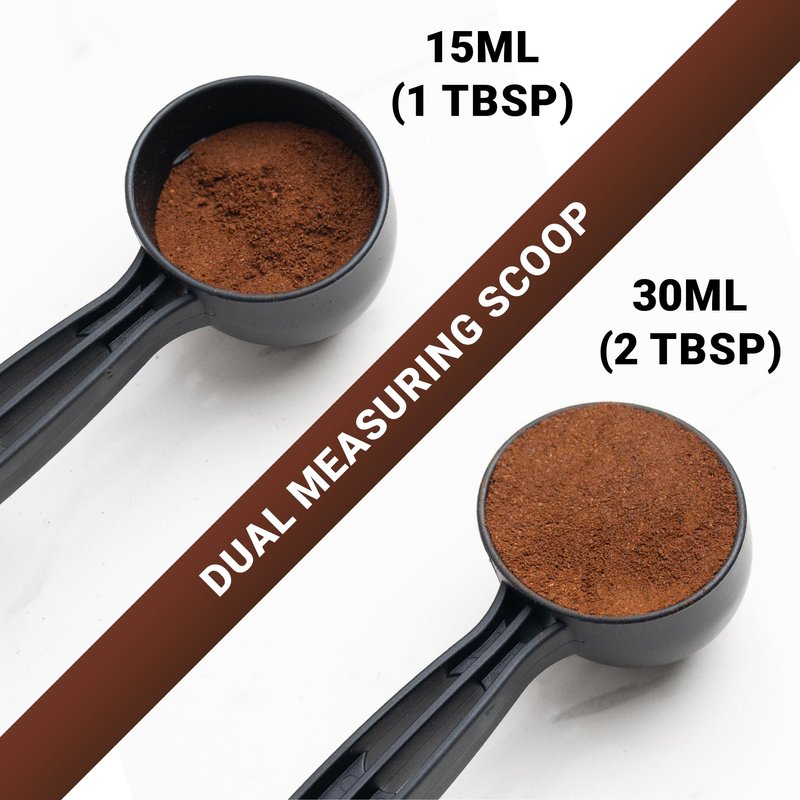 - Dual Measuring Scoop: The Espresso Scoop provides precise measurements with 15ml (1 TBSP) and 30ml (2 TBSP) options, suitable for various needs like ground coffee, protein powder, sugar, baking powder/soda, spices, cocoa powder, and more.