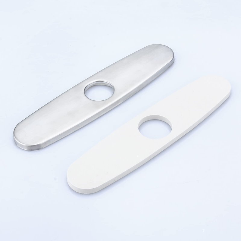 10-inch faucet deck plate mounting aperture is 1.38", fits most single hole kitchen faucets and 3 hole bathroom faucets, through sink hole cover allows single hole kitchen sink faucets to be installed on 2-3 hole kitchen sinks. 304 stainless steel faucet cover is made of a solid and durable metal structure in one piece, which will not deform during installation, ensuring a beautiful appearance and longevity during use. Brushed Nickel escutcheon plate has a premium finish to ensure that the escutcheon is scratch, corrosion and rust resistant. Easy to clean during daily use. Back of the escutcheon plate includes a foam gasket for sealing, which can effectively prevent water from leaking from the sink hole, and it is easy to install without any tools. Reliable durability and after sales service, we back major orders with 3 years warranty, 90 days money back, 7x24 hours email customer support