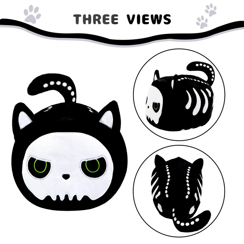 Koiernr Halloween Black Cat Plush Toy Black Cat Pillow, Black Cat Stuffed Animal Pillows Cute Skeleton Black Cat Plushie Toys Gifts for Kids Adults Birthday Gifts Halloween Home Decor