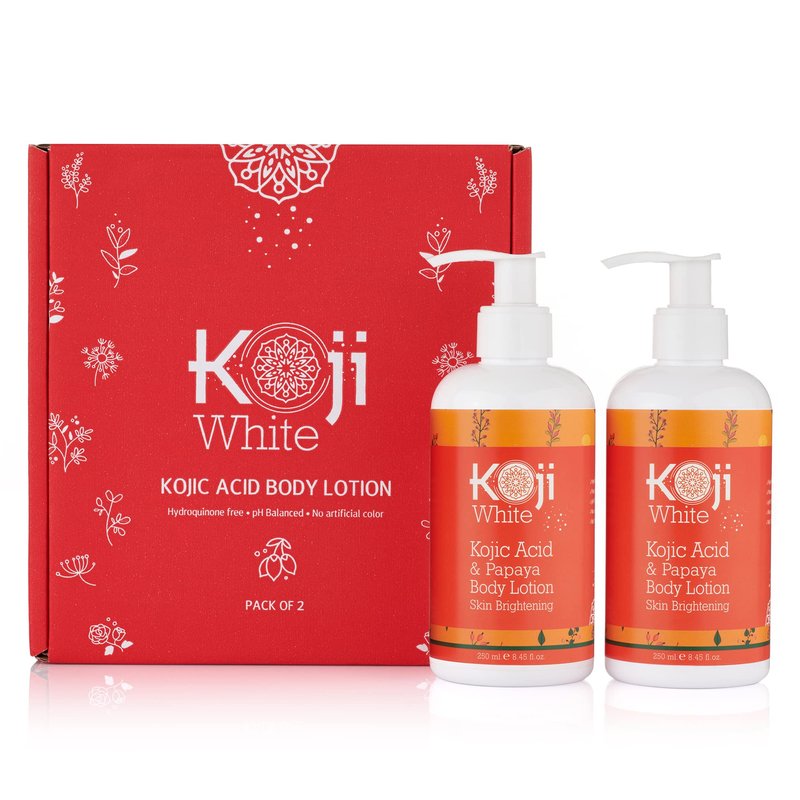 Koji White Kojic Acid & Papaya Body Lotion, Women Gift Sets for Skin Brightening, Moisturizer, Nourishing, Radiance, Even Tone, Age Spots & Sun Damaged, Vegan, Paraben-Free, 8.45 Fl Oz (2 Bottles)