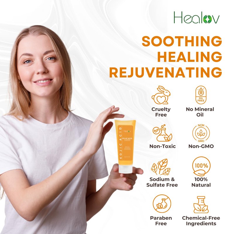 - PURE KOJIC ACID FACE WASH: This all-natural ingredient is sourced from fermented rice, commonly used in Japanese sake. Kojic acid soap is a skincare extract known to assist with issues like melasma, age spots, sun damage, and discoloration.