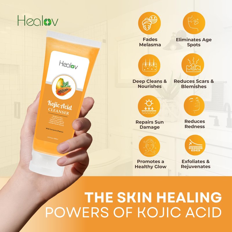 - KOJIC ACID FACE & BODY WASH: Harness the power of fermented rice, traditionally used in Japanese sake, to address melasma, age spots, sun damage, and discoloration with this all-natural ingredient.