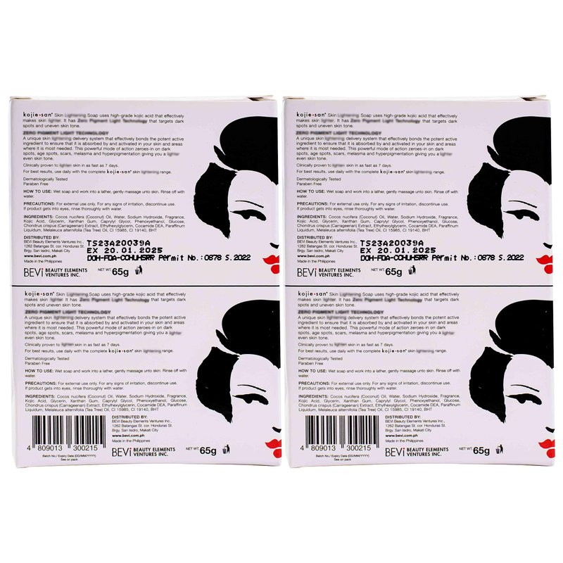 - Package includes: 4 bars of 65g Kojie San Kojic soap