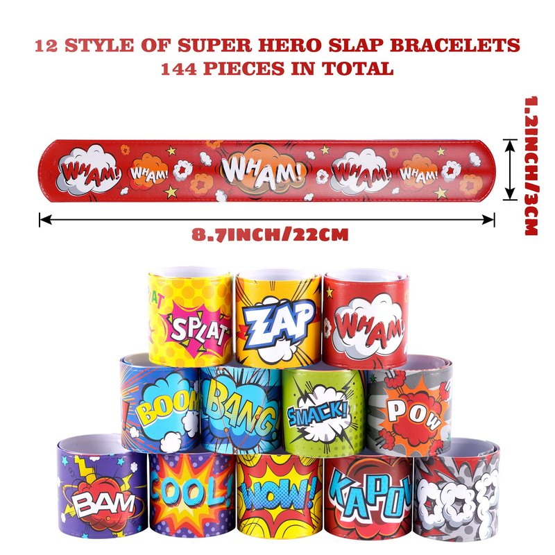 - Wide application: this hero slap bracelet is suitable for hero party favors, birthday party supplies, hero decorations, masquerade, dress up or cosplay, and you can use them as carnival prizes, school prizes, party gift fillings for birthday party gift bags fillings.Used by individuals aged 12 and above