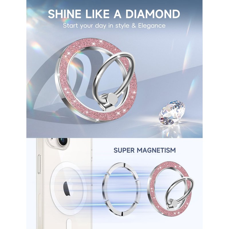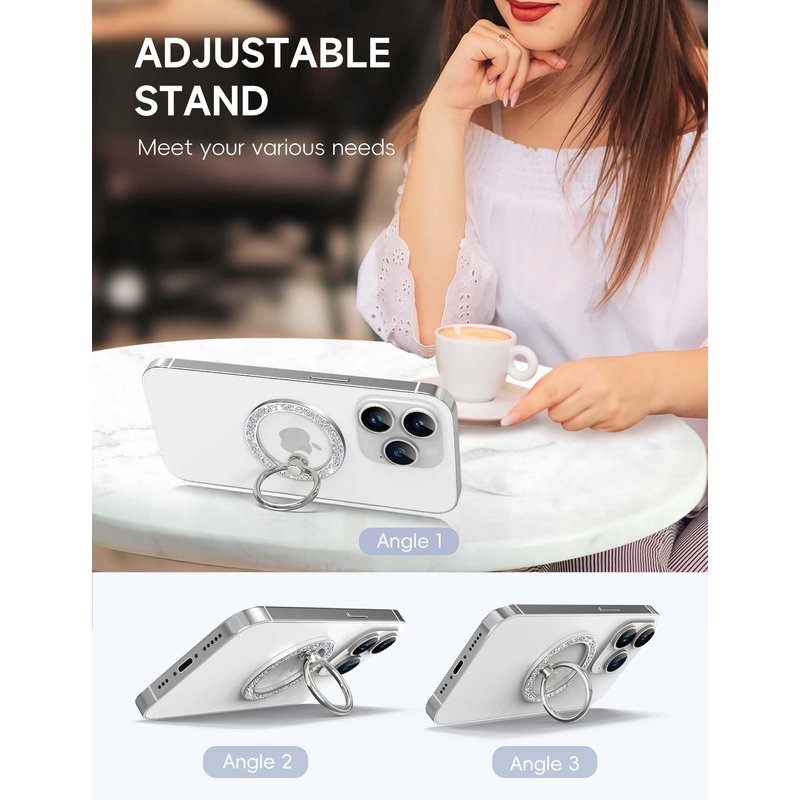- [Enhance Your Grip in Style] Elevate your iPhone 15 Pro Max with our innovative Magsafe Pop Socket, combining magnetic functionality with a sleek design.This sleek glitter twinkle Ring holder made of high-quality silver glitter materials, boasts a vacuum-plated and smooth finish that won’t fade,this accessory adheres effortlessly to the back of your phone case, ensuring a firm grip without compromising on aesthetics.