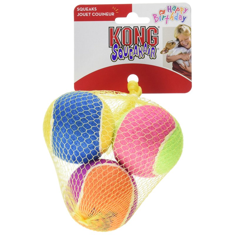 - These colorful versions of our popular Medium Air Dog Squeak air Tennis Balls are imprinted with a Happy Birthday" logo and come three to a package