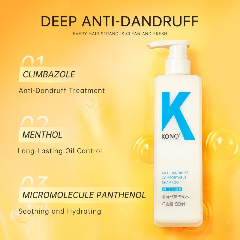- Root Anti-Dandruff: KONO Anti-Dandruff shampoo is formulated with climbazol to effectively combat dandruff, leaving your scalp and hair clean and refreshed. Experience a flake-free and healthy scalp from the roots.