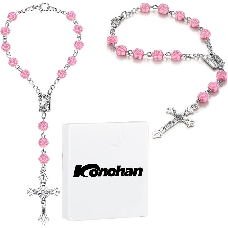 Konohan 2 Pieces Car Rosary Rearview Mirror Auto Rosary Religious Car Mirror Hanging Accessories for Car Personalized Protection Charm for Auto Decors (Rose)