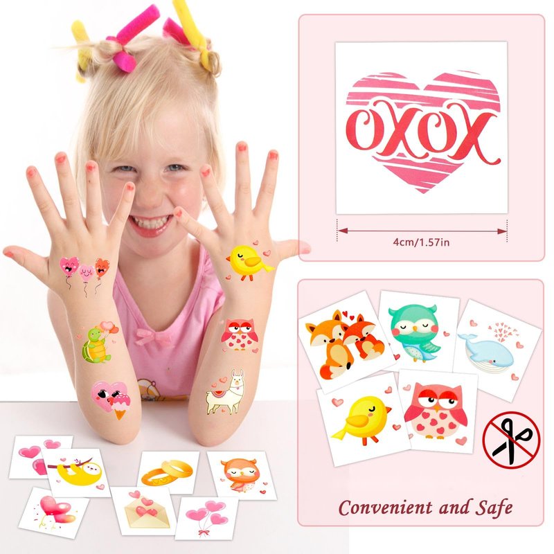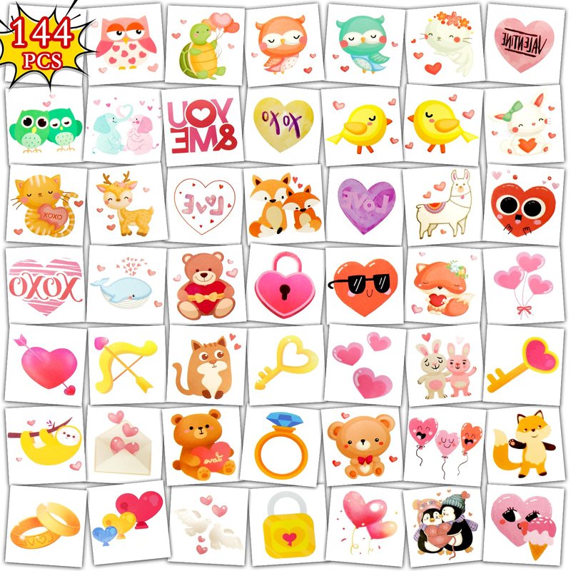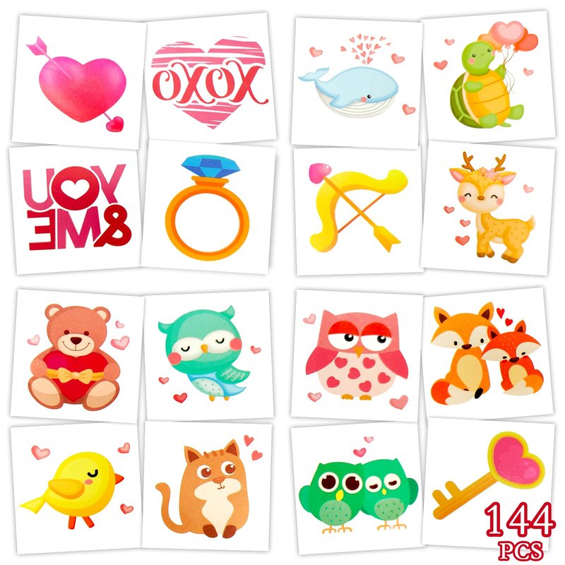 - Valentines Tattoos --- There have valentines heart tattoos, all kinds of cartonized valentines animal tattoos like birds,turtle,cute stuffed bears, foxes, kittens and other valentines tattoos, 48 designs,144pcs, wide variety to choose from, enough to share with family, lovered ones and friends at any valentines celebrations and parties, perfect valentines accessories for kids and adults.