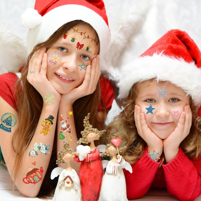 These Christmas glitter tattoos for kids are perfect for a variety of occasions, including children's parties, celebrations and family gatherings. They can also be used as Christmas party favors, gift bags and children's party supplies. We are confident that you and your kids will love these shiny, safe tattoo stickers!