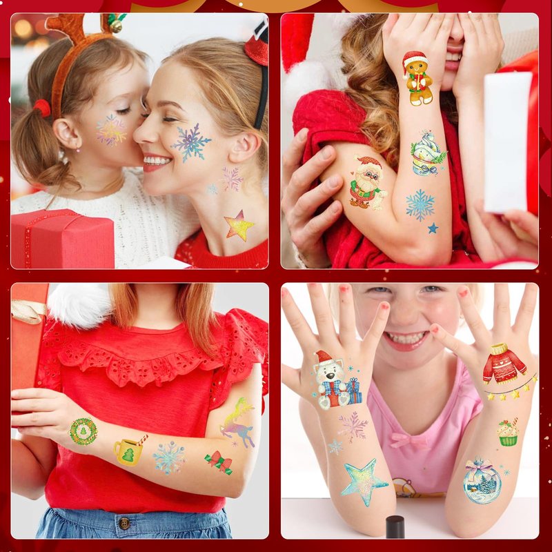 - High Quality: Our Christmas tattoo stickers have gone through multiple strict safety tests and can be used with confidence. There are clear instructions for use on the back of each tattoo sticker. Most importantly, these cute temporary tattoos won't fall off easily, making it possible for kids to enjoy the fun of beautiful tattoo stickers for a long time