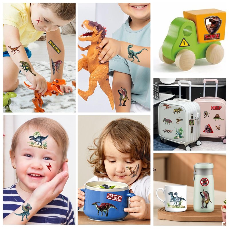 - 【 Multiple Uses 】 Dinosaur tattoos temporary for kids are best choice for dinosaur party, birthday party, Hawaiian themed party, back to school season party favors, dinosaur party supplies, Christmas gift fillers and other occasions to immerse kids in the joy of the dinosaur world. You can stick it on the skin surface or other smooth objects, such as refrigerator, luggage, water cups, etc., adding fun to life.
