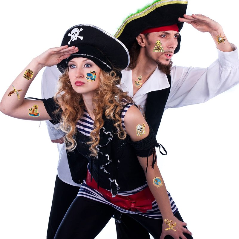 - 【Waterproof and Durable】Great fun pirate theme fake tattoos,uses the latest waterproof technology ,can be used in pool,shower and beach,usually last 3-5 days. Metallic pirate theme styles with brilliant colors and super cute designs,they're the bomb for a nautical birthday parties.Great fun for both children and adults alike!