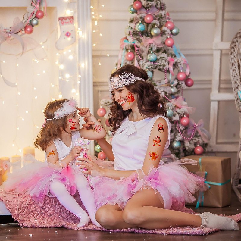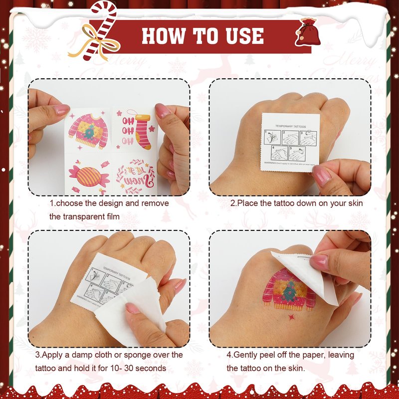 - Reliable & Safe: These pink christmas tattoos are made of high-quality material, safe and durable for both adults and kids. These christmas temporary tattoos can be applied to hands, arms, face, etc. Each tattoo measures approximately 1.8*1.8 inch