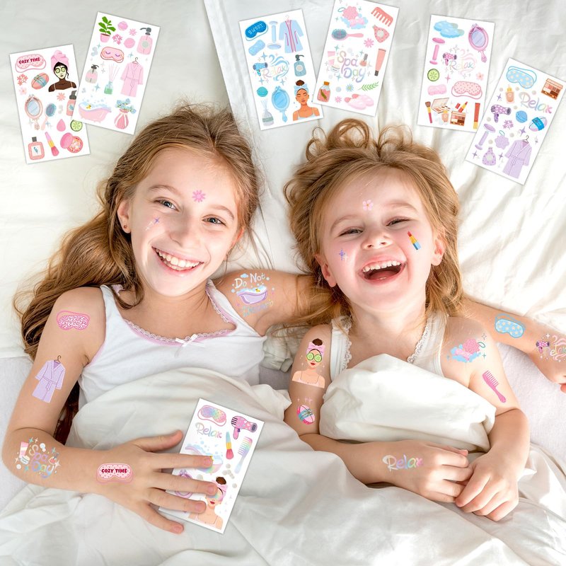 - 【 Lasting and Durable 】 These kids spa party tattoos last for 3-5 days, with waterproof and sweatproof function, safe and odorless. Even after the party is over, you can still continue to enjoy these beautiful tattoos.