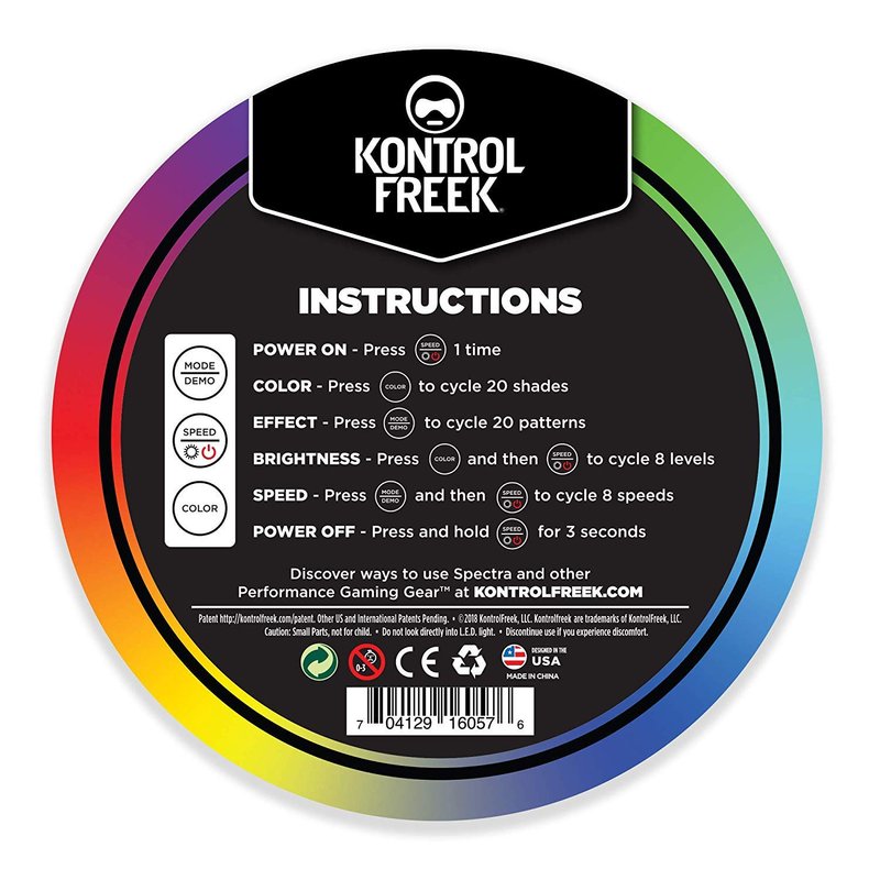 Light up your game with KontrolFreekās Gaming Lights. Our USB powered LED strips allow you to create an immersive and customizable lighting experience to complete your setup and even improve your picture quality. Personalize your look with multiple options for colors, effects, speeds and brightness as well as configurable length up to 9ft. Our Gaming Lights include 6 USB powered 18in LED strips and 5 connectors. Use the connectors to build up the strips to the best length for your setup, up to 9ft. The 3M adhesive backing is flexible and safe for flat surface mounting so you can personalize your monitor, TV, console, desk, PC, walls and more! The in-line controller easily allows you to sort through 5 effects, 8 colors, 8 speeds and 3 brightness levels. Gaming lights can also improve your picture quality. In a darkened space, direct lighting of a display from the front or side introduces glare and haze, making the image look worse. By backlighting the display, the contrast ratio can be increased, making your picture look better and reducing strain on your eyes. Colors can also impact how you play by calming, clearing or accelerating your senses.