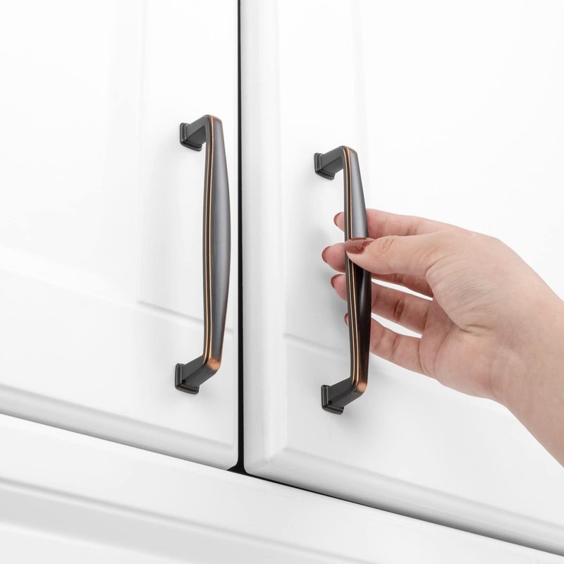 - Pack of 10 oil rubbed bronze square foot arch cabinet pull handles, solid metal hardware.