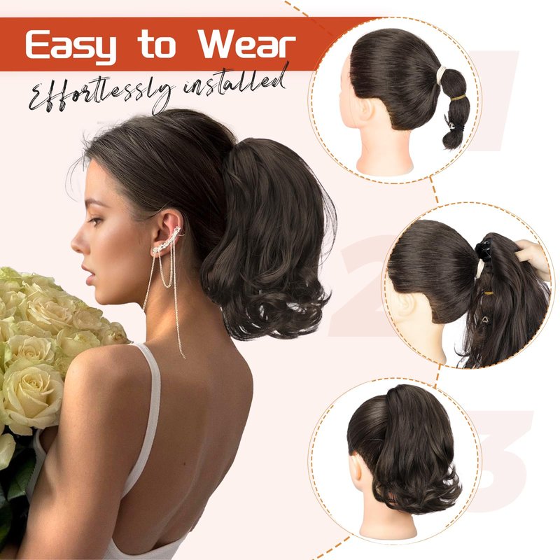 - 【Classical Curly Ponytail Extension】The ponytail extension provides a short, elegant ponytail design by ombining claw clips with flexible synthetic drawstring hair accessories.