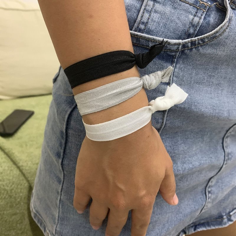 Description: The high-quality soft fabric will not hook or damage your hair. Can also be worn as a bracelet, perfect ponytail holder