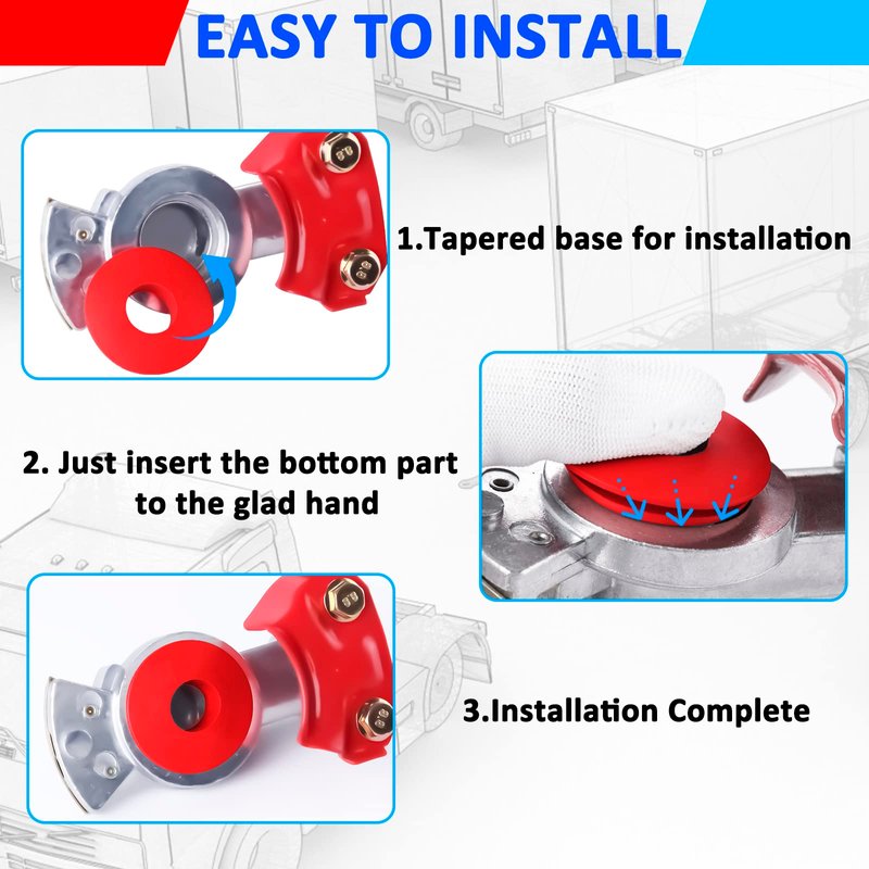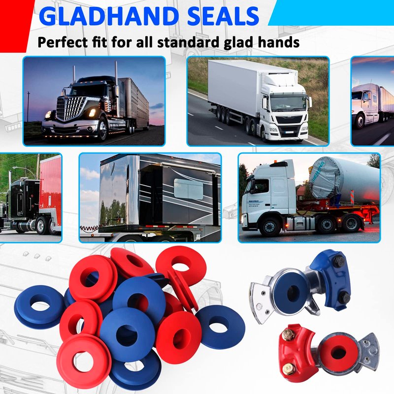 - 【EXCELLENT PERFORMANCE】Our glad hands seals are durable to use, good elasticity, high toughness, good torsion,tear resistance,oils resistance, chemicals resistance and waterproof. Red and blue color for easy identification to avoid incorrect connections.Designed with a tapered base for ease of installation. It's a must-have for your truck.