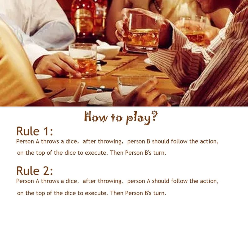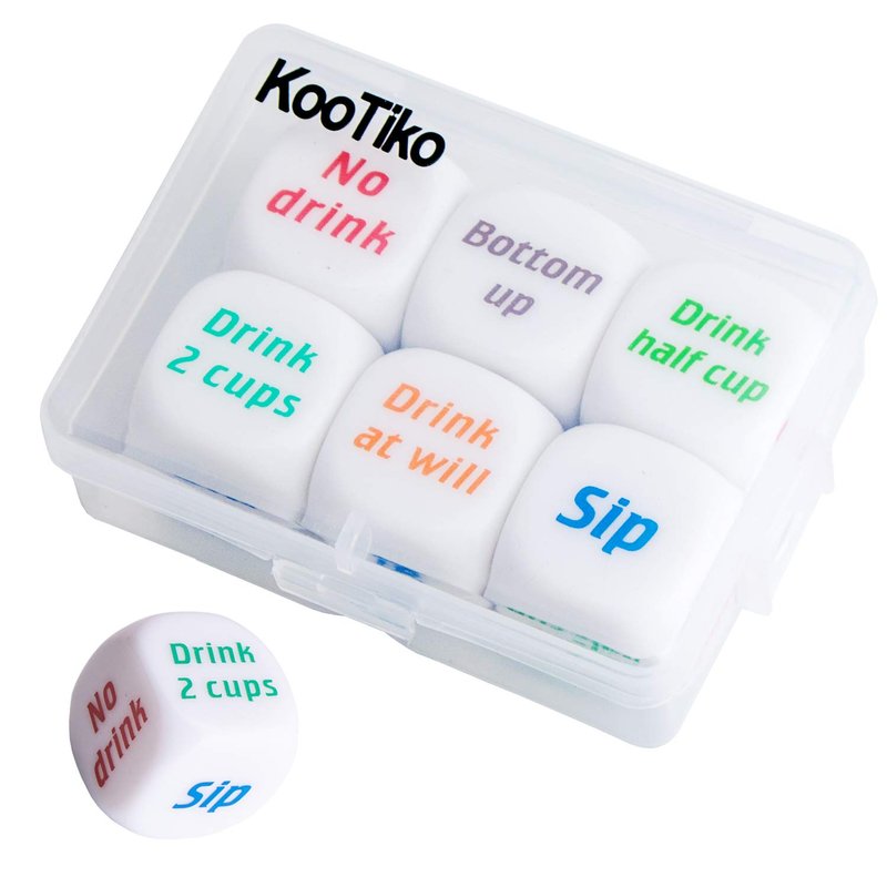 - Party drinking dice set, come with 6 pcs dices and printed with colorful words, these are not only funny but also long lasting
