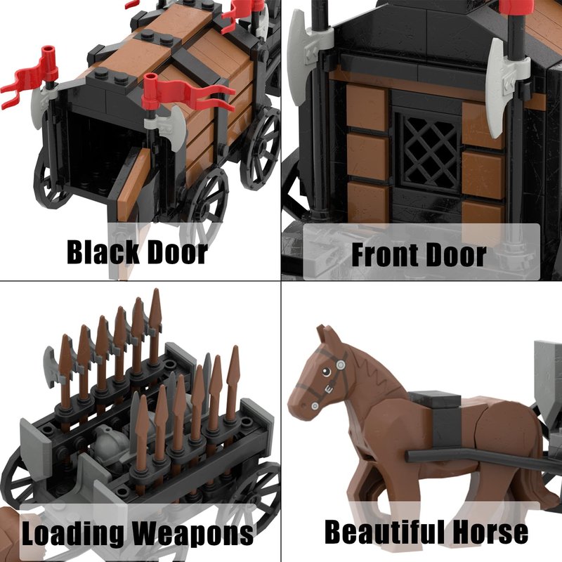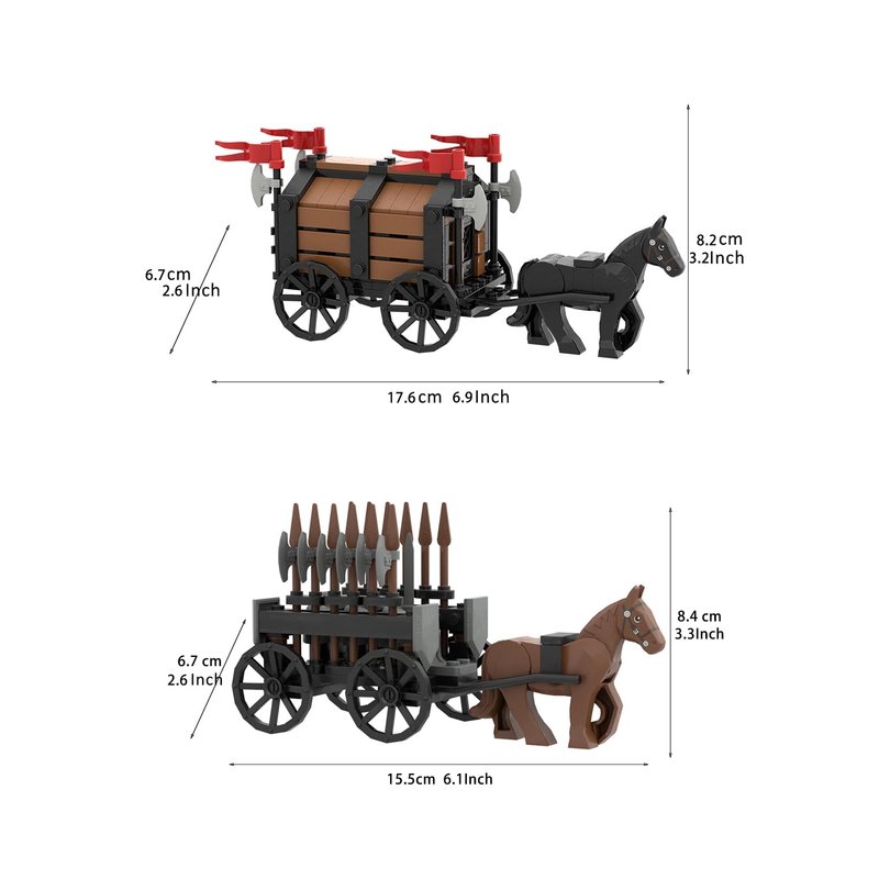 - 【What Will You Get?】Included 2 Kind of Medieval Carriage Building Blocks,You Will Get One Weapons Carriage,One General Carriage.MOC Medieval Castle Carriage Building set,Suitable for the leading brand (LEGO)