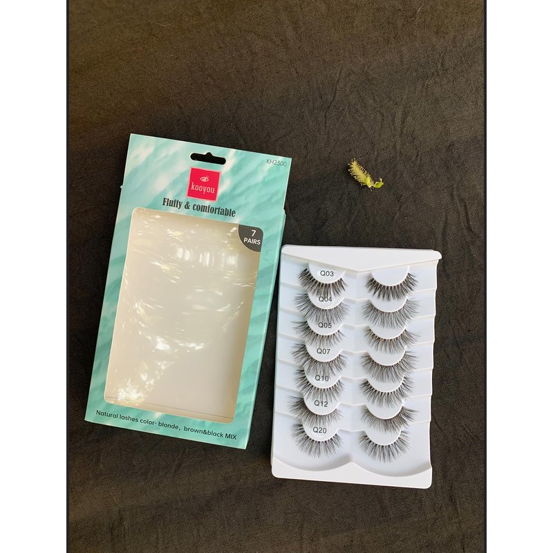 【7 DIFFERENT KINDS OF FALSE EYELASHES】Each set comes with seven different pairs of fake eyelashes, all of which are unique and have subtle differences in each pair. From a thick lashes to a much more false lashes natural look, our collection has everything you need! All false eyelashes have a soft curve, voluminous yet not overwhelming, and feature transparent stems for an invisible, seamless look. 【CREATING DIFFERENT STYLES】Our fake lashes come in varying densities and curl levels. Some styles, like our thick and voluminous eye lashes, are perfect for special events and dramatic looks. Others, such as false eyelashes natural, are perfect for everyday wear, adding a pop of glam to your look without being too flashy.Mimic hand Tied classic lashes,perfect for daliy lash look. 【NATURAL FLUFFY LAYERING EFFECT】Our false lashes are expertly crafted with a unique layering process that creates a dimensional effect that adds depth and definition to your eyes. Fluffy lashes offer a stunning and polished look, making your eyes the center of attention. Our strip lashes can easily be trimmed to fit your eyes precisely and comfortably.Ultra-real eyelash effect,untapered lash tips add the extra fluffy. 【LIGHTWEIGHT AND EASY-TO-ADHERE】Our faux eyelashes are incredibly easy to apply. The lightweight and flexible stems make the application process effortless and comfortable. Our fake eyelashes multiple uses, so you won't have to keep buying and applying new lashes each time you want that glamorous look.Superfine band will bring you gorgeous eyes without awkward lash line. 【ELEGANT BLACK AND BROWN BLENDED FALSE EYELASHES】The blend of colors provides depth and definition, false eyelashe have a low-key and elegant feel, perfect for those who want to enhance their natural beauty subtly. If you have any questions about these reusable adhesive eyelashes please contact us, we will give you a satisfactory reply within 24 hours.