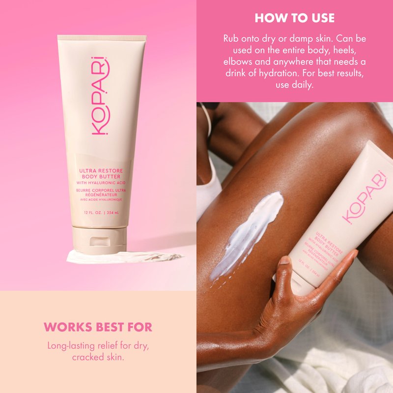 - Jumbo Ultra Restore Body Butter is 1.5x bigger! Ultra Restore Body Butter is a clean and vegan all-over body moisturizer packed with active ingredients including hyaluronic acid, antioxidants, omegas, and fatty acids that work to hydrate and retain moisture.