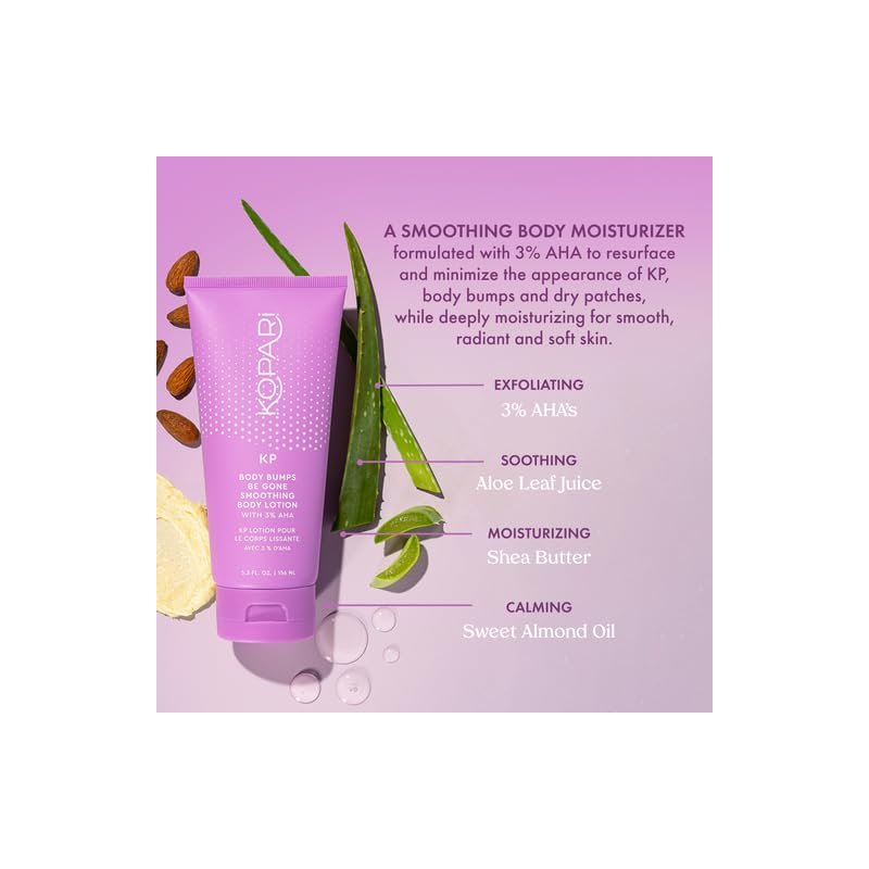 Kopari KP Body Bumps Be Gone Smoothing Body Lotion with 3% AHA, Shea Butter and Sweet Almond Oil, Moisturizing KP Lotion for Body - 5.3 oz