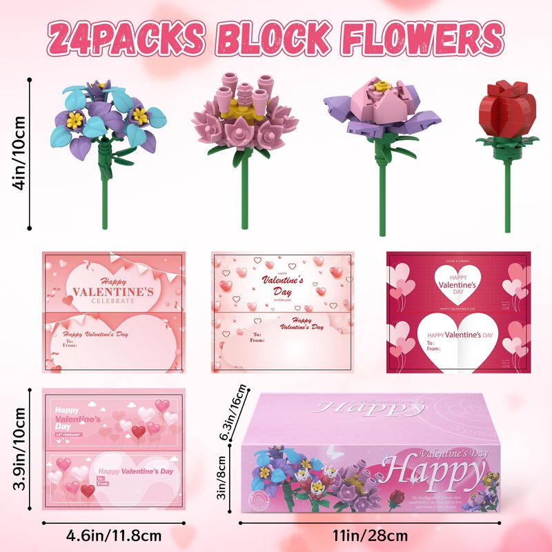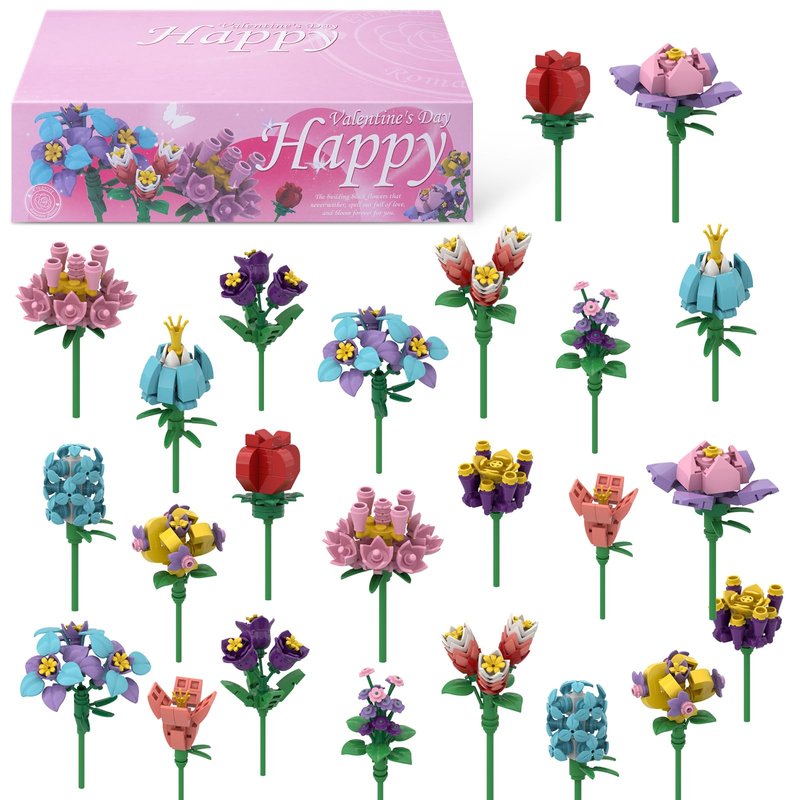 - KIDS VALENTINES DAY GIFTS SET: Our Valentine's Day Flower Building Blocks package includes 24 unassembled flower blocks (12 types of flower blocks) and a beautifully packaged box. The blocks are brightly colored, the blocks are smooth and burr-free, made of safe materials