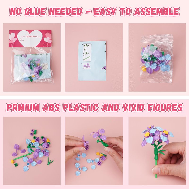 - BLOCKS FOR KIDS: Our Valentine flower building block are made of standard compliant and high grade ABS material. Safe and non-toxic for children, parents can let them play with it safely.