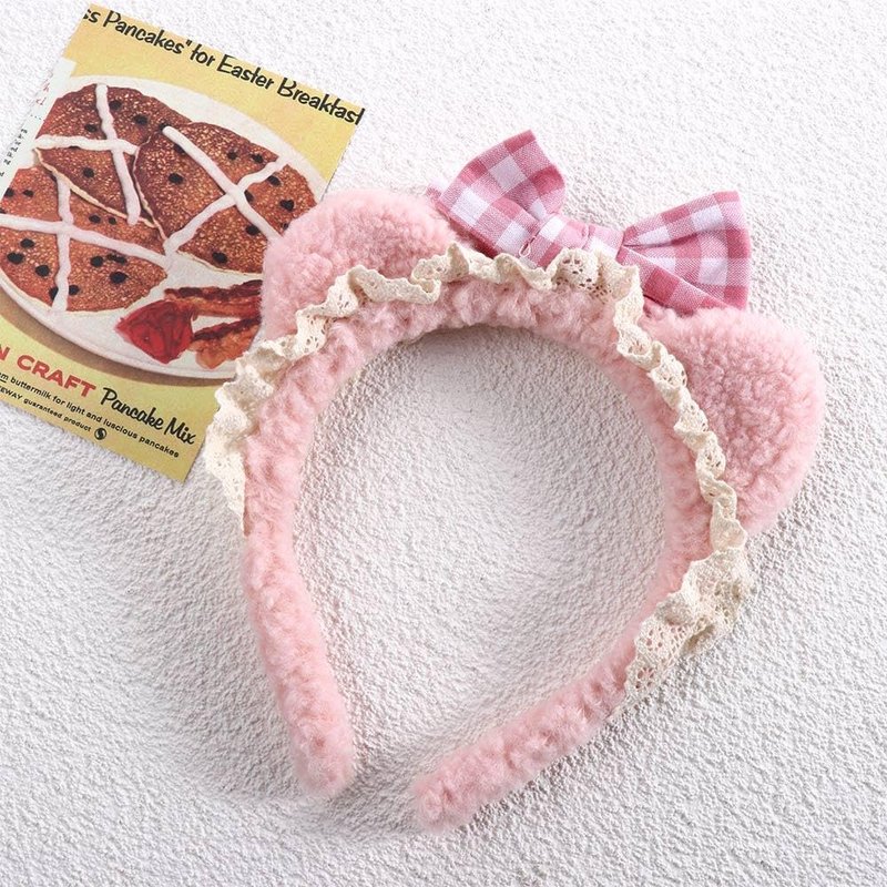 Kopida Cute Plush Bear Ear Headbands Bow Hair band, Non Slip Wash Face Headbands Elastic Bands for Women Girl