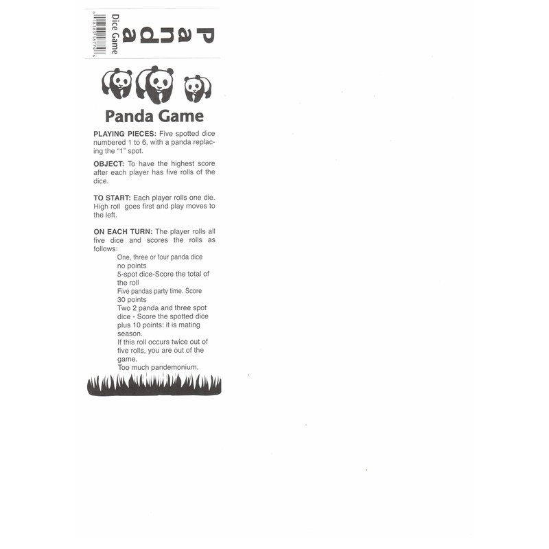 Enjoy playing Panda at home or on the go! All contents of the game are included inside a conveniently sized plastic tube. See gallery images for a copy of game play and rules.