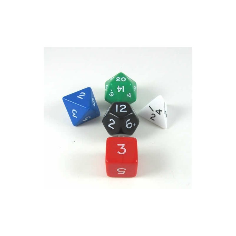 - A set of 5 Platonic Jumbo Dice.