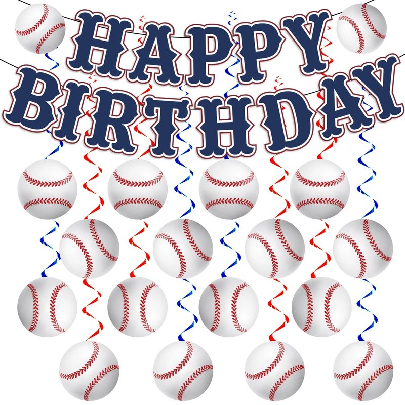 KORHONEN Baseball Party Decorations, Baseball Birthday Party Decorations Includes Happy Birthday Banner and Baseball Hanging Swilrs, Baseball Themed Party Decorations for Boys Adults