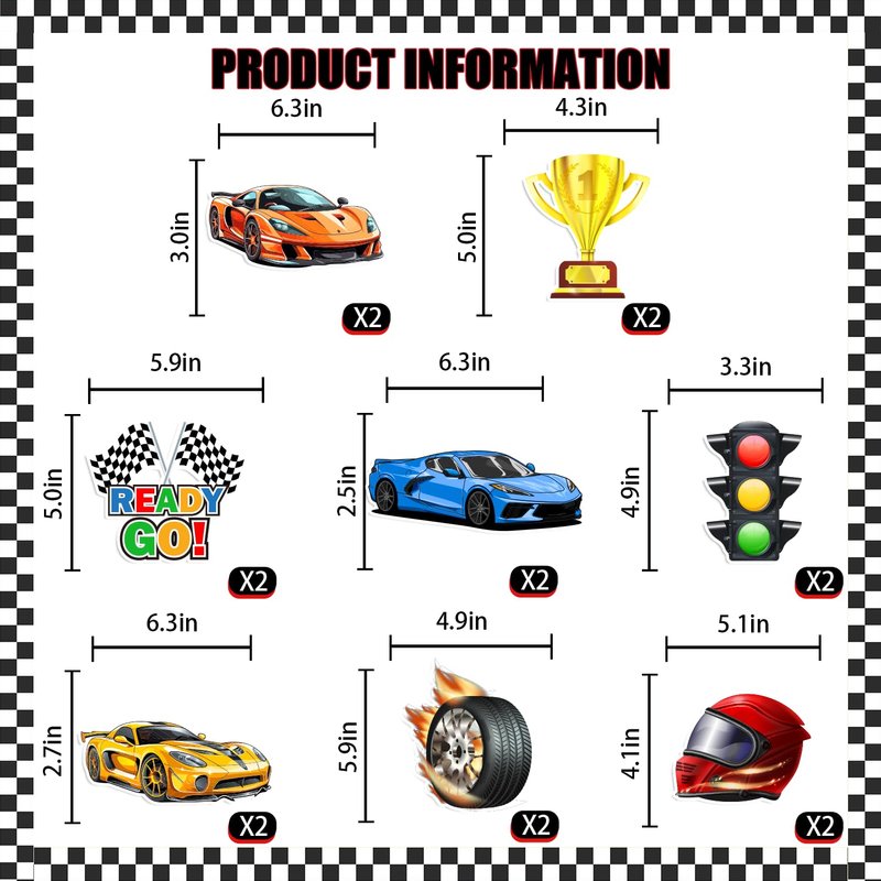 - 【High Quality Material】:The race car birthday party decorations are made of high-quality sturdy cardstock and metallic foil. The cardstock are double-sided, more durable. It's perfect for catering to the racing car-themed birthday atmosphere.
