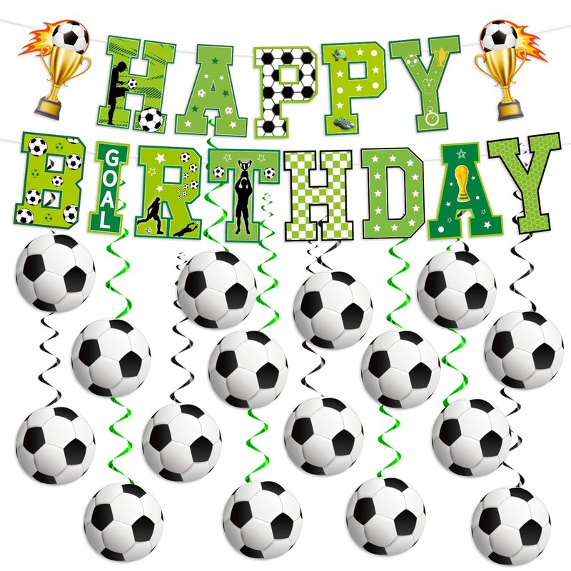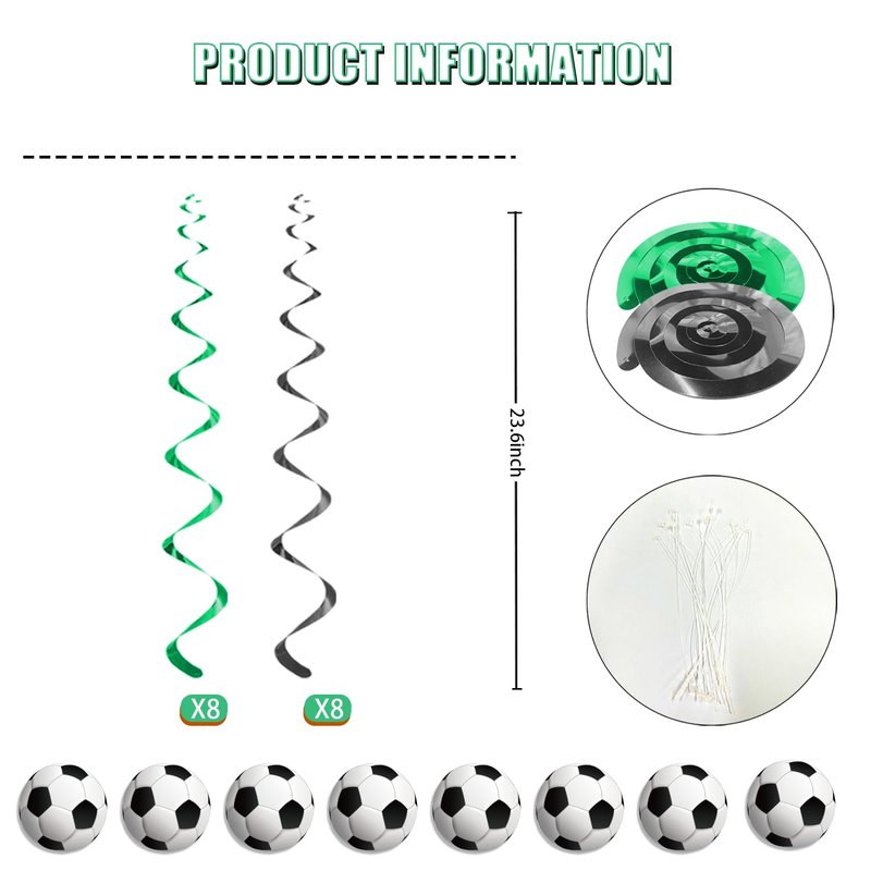 - 【Package Included】:Soccer birthday decorations includes 1pcs happy birthday banner and 16pcs soccer theme card swirls with 16pcs hanging swirls.