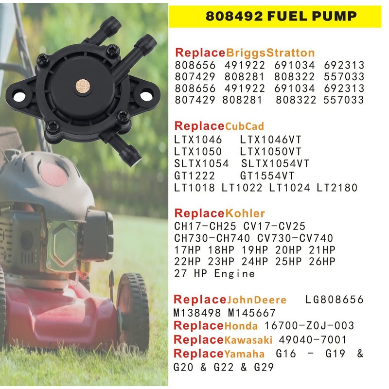 - 【Product Compatibility】This kohler command fuel pump is compatible with:Briggs Stratton BS 808656 491922 691034 692313 807429 808281 808322 557033 808656 491922 691034 692313 807429 808281 808322 557033;Cub Cad LTX1046VT LTX1050VT SLTX1054VT LTX1046 LTX1050 SLTX1054 GT1222 GT1554VT LT1018 LT2180 LT1024 LT1022;Kohler CH17-CH25 CV17-CV25 CH730-CH740 CV730-CV740 17HP 18HP 19HP 20HP 21HP 22HP 23HP 24HP 25HP 26HP 27 HP engine ;Kohler 24 393 04-S,24 393 16-S; John Deree: LG808656 M138498 M145667