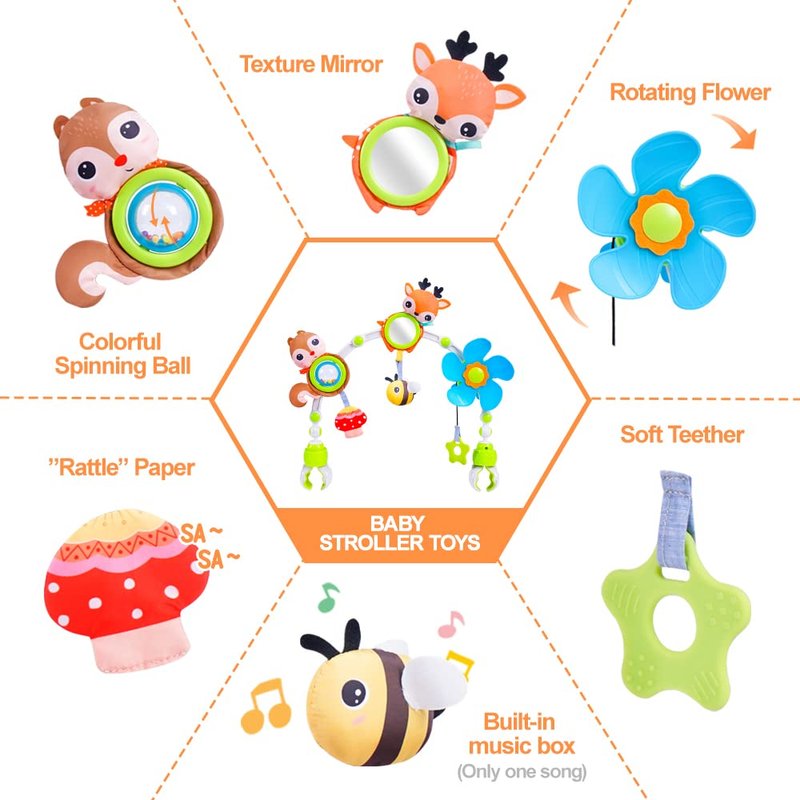 - Fun Textures and Toys : The babies will get fun filled environment with musical animal while in the stroller and pram. The arch fits easily onto with prams and strollers, through two large sturdy clips