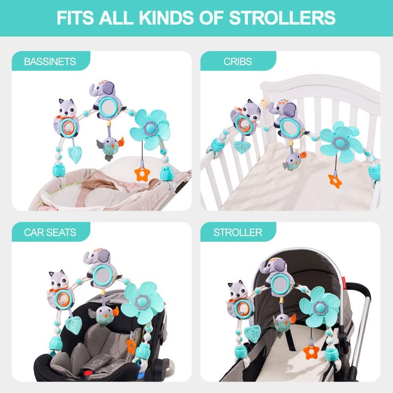 - Fun Textures and Toys : The babies will get fun filled environment with musical animal while in the stroller and pram. The arch fits easily onto with prams and strollers, through two large sturdy clips